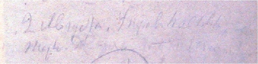 На заднем форзаце ЗК2, в правом верхнем углу, была обнаружена угасшая запись.