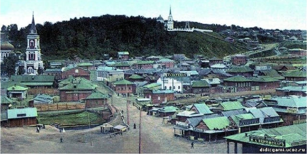 Илл. 2. Барнаул. Общий вид с горы. Конец ХIХ в. Фото С. И. Борисова. Открытка, дизайнер А. Л. Кальмуцкий