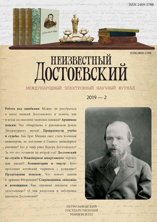 - Borisova V. V. “The Kumanin Heritage Case” in Life and Works of F. M. Dostoevsky. In: Neizvestnyy Dostoevskiy [The Unknown Dostoevsky], 2018, no. 1, pp. 32–42. Available at: http://unknown-dostoevsky.ru/files/redaktor_pdf/1524832332.pdf (accessed on August 15, 2018). doi: 10.15393/j10.art.2018.3481 (In Russ.)