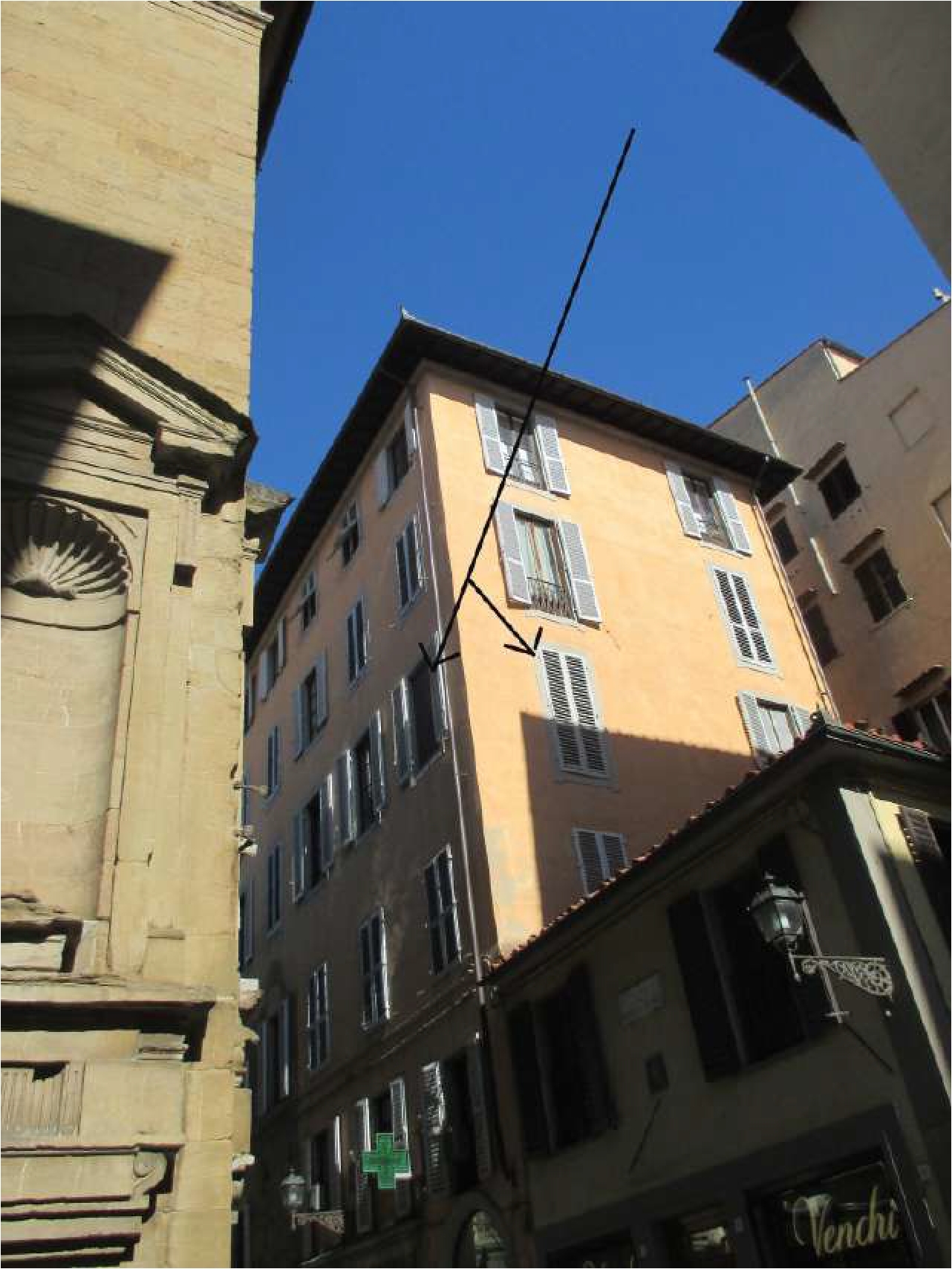По этому адресу он жил «несколько месяцев» (или, точнее, «пару месяцев») в доме принца Антонио Бонапарта (Antonio Bonaparte)[12]. Из окон этого красивого дома (см. Илл. 4), расположенного на перекрестке напротив еще существовавшей тогда церкви Санта-Мария-сопр-Арно13, можно было наслаждаться прекрасным видом.