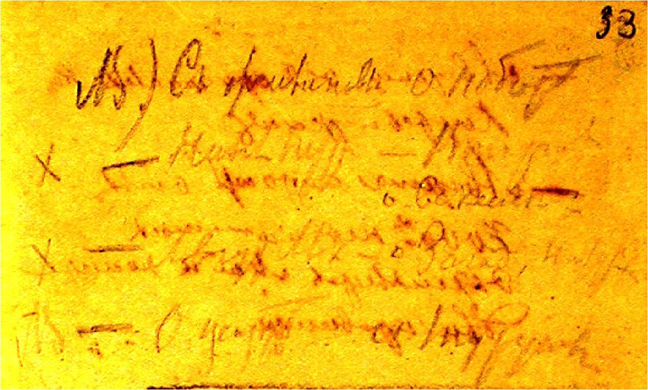На с. 33 ЗК2 карандашом записан список дел по изданию очередного номера «Эпохи» с именами и фамилиями людей, с которыми эти дела нужно решить (см. Илл. 11). Среди них есть запись, которая в ЛН и Д30 была прочитана как «Никол<ай> Петр<ович> Второв о векселе» [ЛН, т. 83: 181]; (Д30; 27: 92). В комментариях к обеим публикациям сказано, что личность Второва не установлена [ЛН, т. 83: 194]; (Д30; 27: 358). С. В. Белов считает, что, скорее всего, имеется в виду какой-то кредитор Достоевского по журналу «Время» [Белов, I: 164].