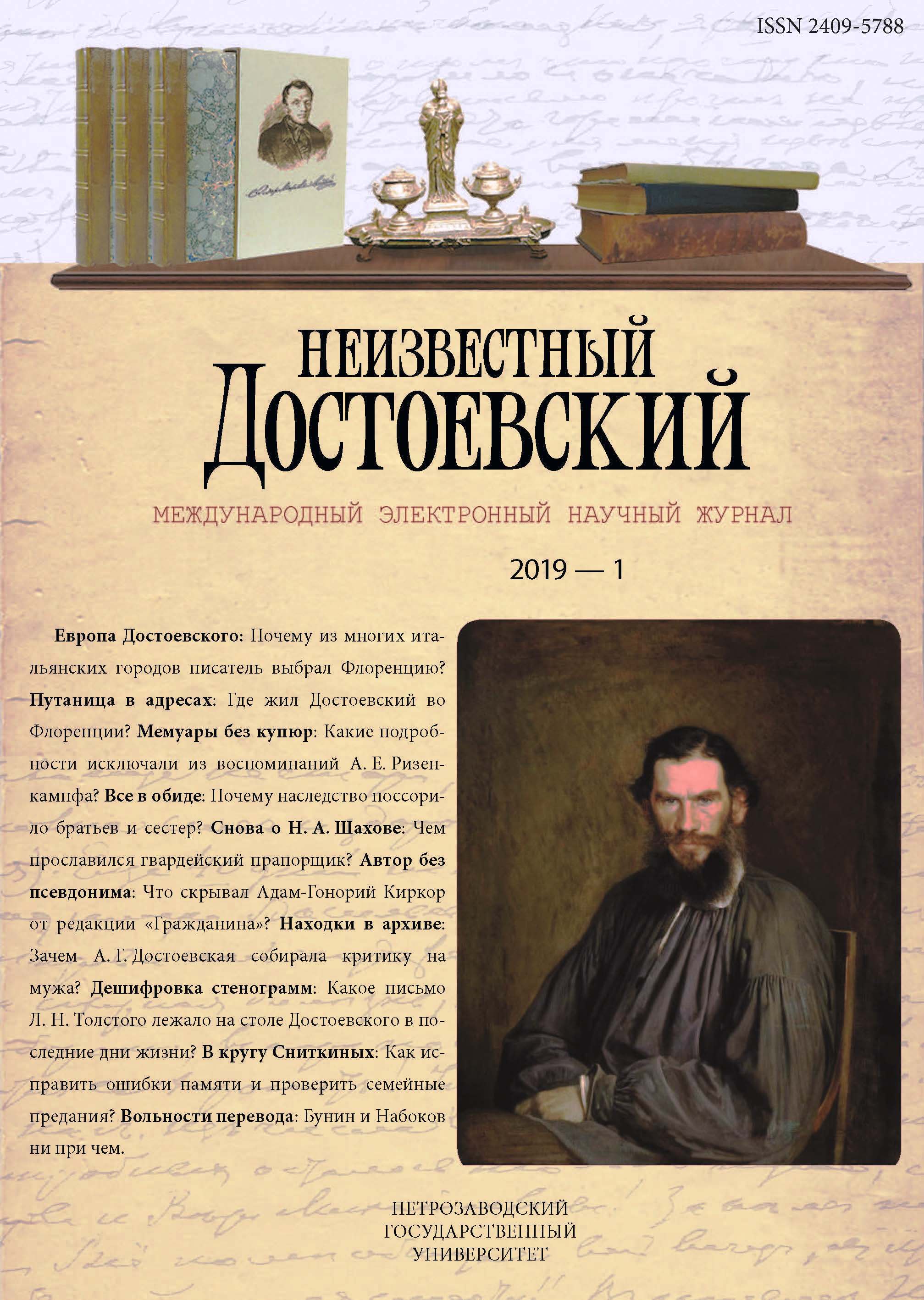 Dostoevsky works have acquired global significance. Public intellectuals and great artists have compared him to Shakespeare. The entire world hails Dostoevsky as a novelist, psychologist, philosopher and preacher. A writer and prophet, critic and columnist, editor and journalist – he still stirs up disputes and contradictory judgments. His artistic credibility is still determined by literary myths, rather than persuasive assumptions. Today, there is no shortage of traditional and ingenious interpretations of his writings, concepts of his work, but the crisis of contemporary research is apparent: the critical essays are dominated by patchwork strategies, the question of textual criticism, archival sources and the reception of Dostoevsky’s legacy in journalism and critical studies in 1845–1931 are insufficiently studied. There is a persistent need to expand the source base for the research into Dostoevsky’s biography and work. The mission of Neizvestnyi Dostoevskii=The Unknown Dostoevsky research journal is to attract and support such research.