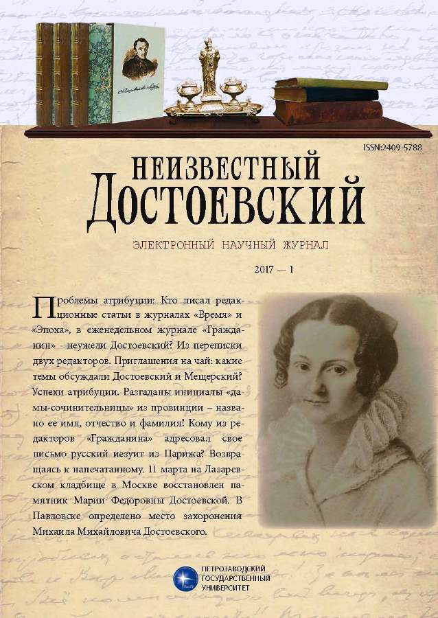 В изданиях, которые редактировал Ф. М. Достоевский в 1860–1870-е гг. («Время», «Эпоха», «Гражданин»), опубликовано много анонимных статей. Традиционные методики их атрибуции зачастую безуспешны. В обсуждении этой проблемы исследователи обычно пытаются однозначно решить, кому принадлежит та или иная статья, но не учитывают специфику и практику журналистской и редакторской работы того времени, требования и условия публикации статей, их жанровые особенности. Почти все анонимные статьи в этих изданиях были редакционными. Их писали сами редакторы или сотрудники и авторы по заданию редактора. Иногда редакция покупала чужой текст и перерабатывала его. Редакционные статьи выражали направление журнала, реализовывали установки и указания редактора. Не имело значения, кто писал текст. Статья отчуждалась от автора и становилась принадлежностью редакции. Следует рассматривать редакционные статьи как особый жанр. Их атрибуция возможна, но необязательна. Среди анонимных статей журналов «Время» и «Эпоха», еженедельника «Гражданин» выделяются публикации Ф. М. Достоевского, с его участием и участием соредакторов М. М. Достоевского («Время», «Эпоха») и В. П. Мещерского («Гражданин») подготовлены другие редакционные статьи; во всех редакционных делах доминировал Ф. М. Достоевский. Как особый жанр, редакционные статьи необходимо публиковать и включать в современные издания по истории русской литературы и журналистики.