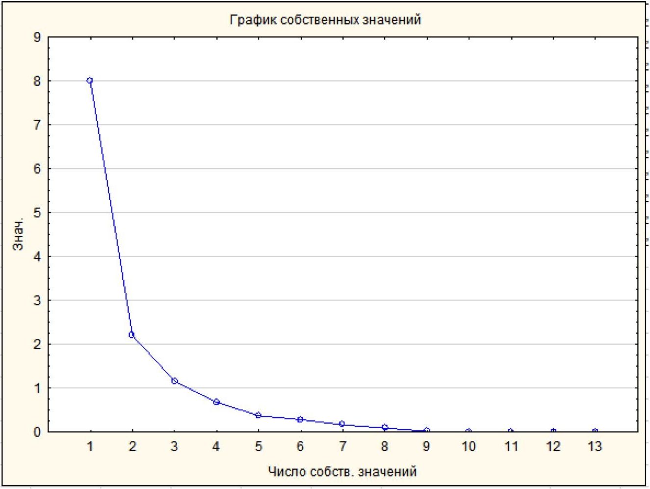 Для визуализации собственных значений факторов был построен график каменистой осыпи (рис. 1).