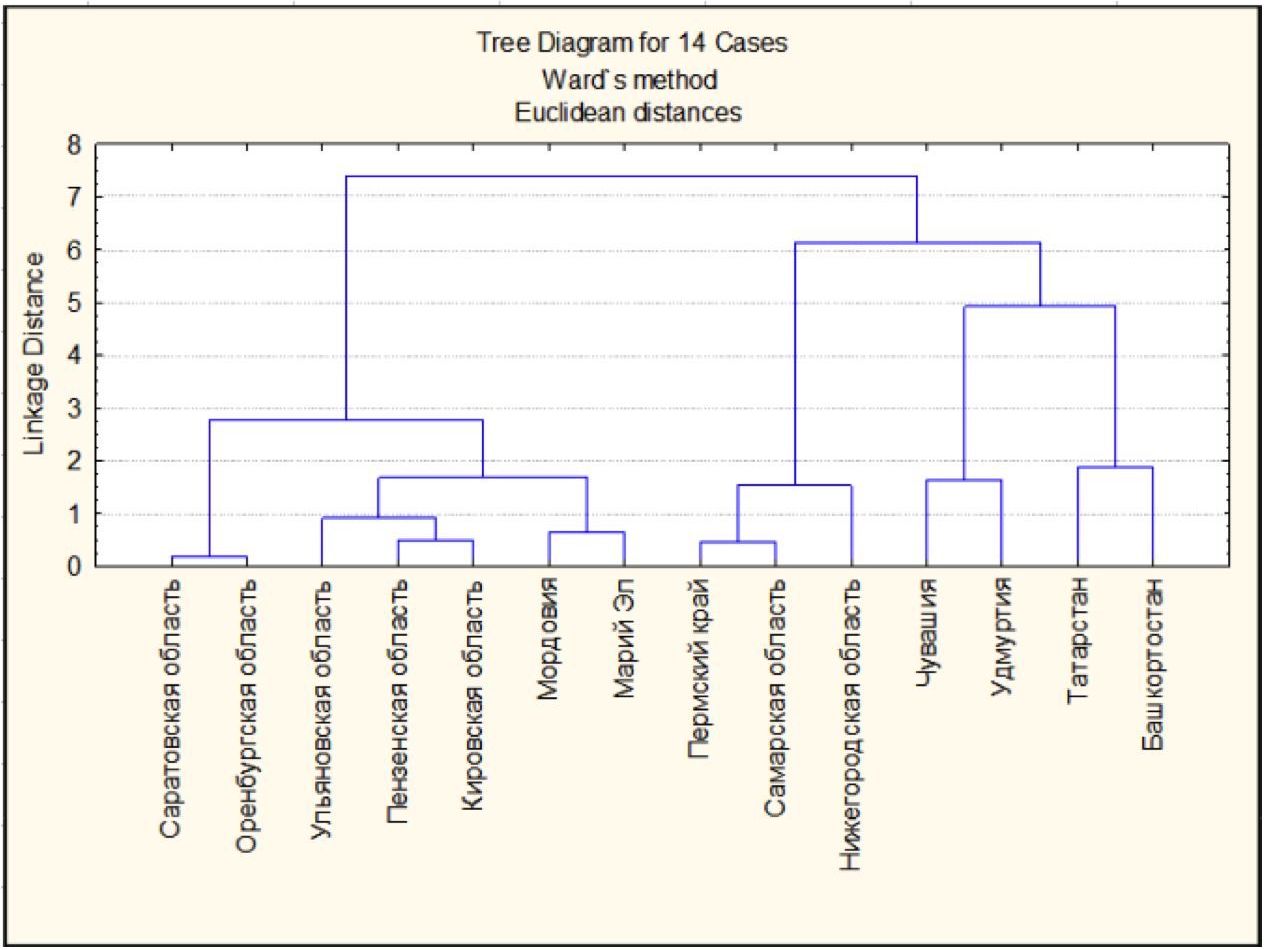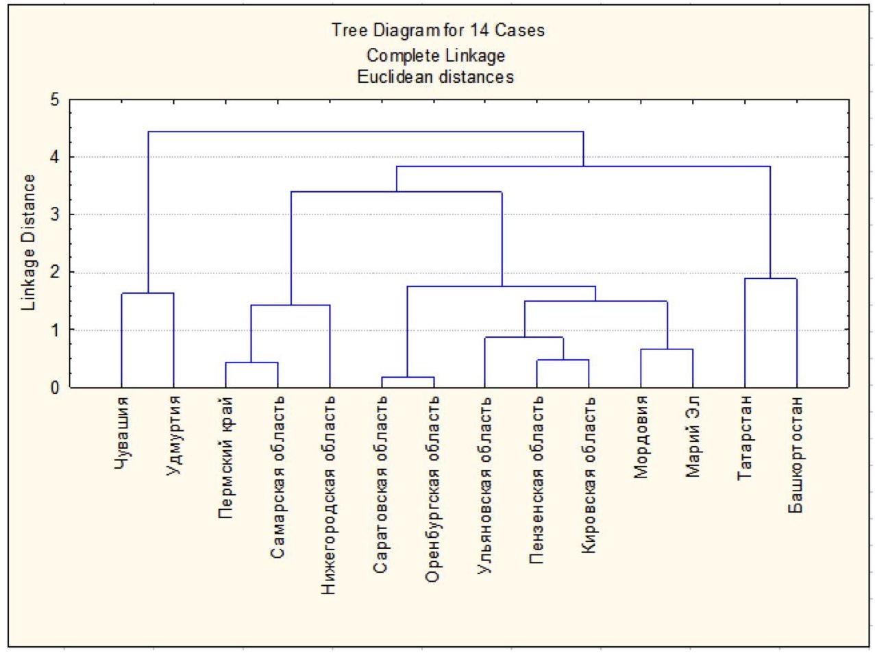 Table 4 Classification of the regions of the Volga Federal District by the k-means method