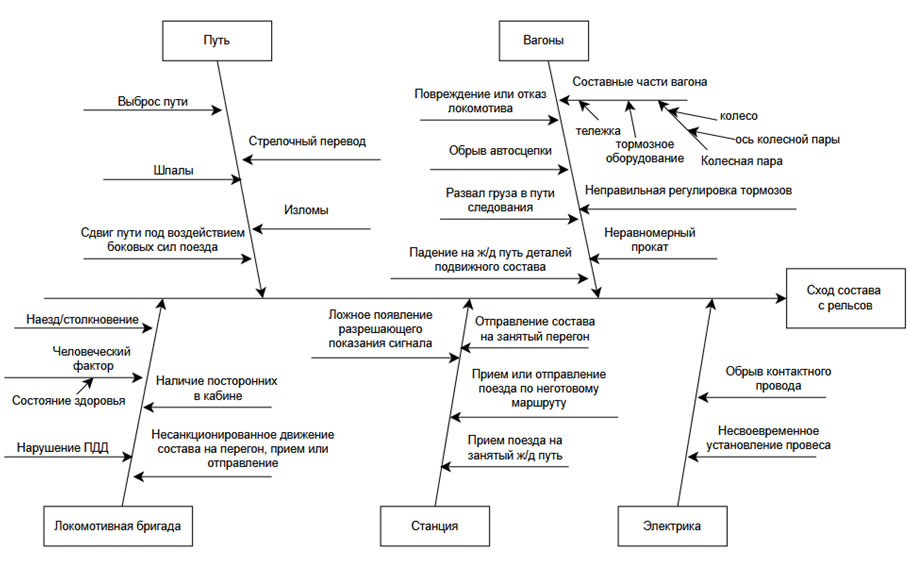 Рис.1. Диаграмма Исикавы «Причины схода состава с рельсов»