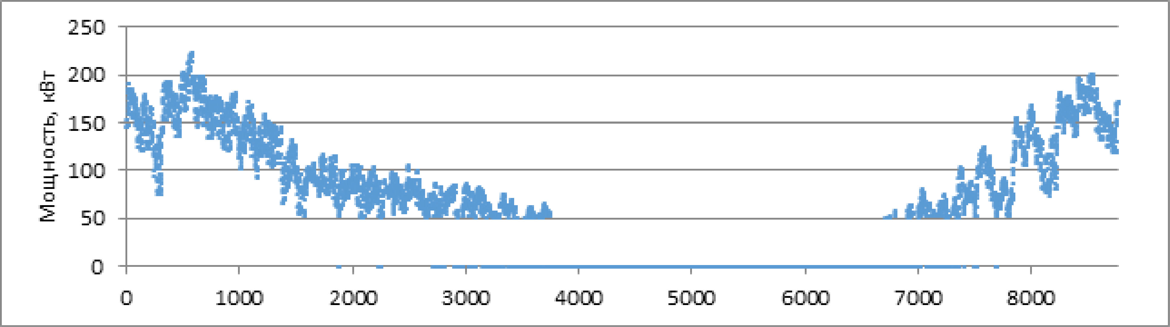 Рис. 3. Годовой график тепловых нагрузок с. Усть-Соболевка часовой детализации