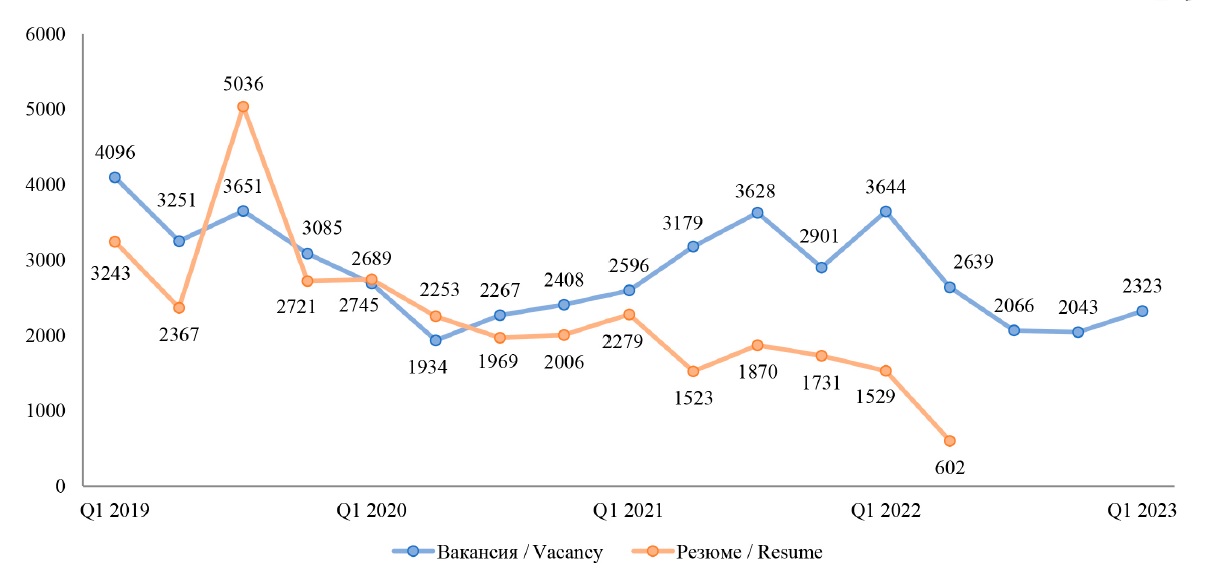 На российском рынке труда при подборе специалистов существенной выступает проблема коммуникации. Многие компетенции и должностные обязанности в текстах резюме и вакансий не согласованы. Для соискателей поиск работы остается экзистенциальной сферой, которой необходимо уделять максимум внимания. При этом количество компетенций и разнообразный опыт не позволяет работодателям определить их качество. В большой мере кандидаты на должность ориентируются на тексты вакансий. Если в них потребности в определенных знаниях, умениях и навыках сокращаются, соискатели также склонны их реже указывать. Данный тренд – на спад профессиональных знаний и навыков – негативный сигнал для экономики страны.