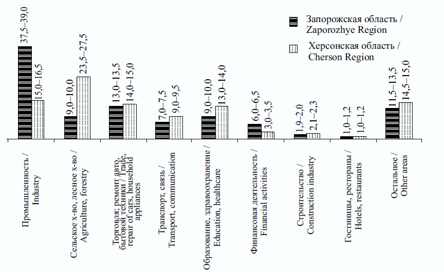 Fig. 2. The GRP structure of the Zaporozhye and Kherson Regions n the first half – mid 2010s, %