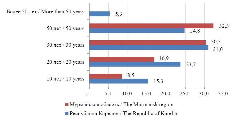 Большинство респондентов (69,6 %) считает, что экологически ориентированные инициативы не должны «стоить денег». Была обнаружена статистическая взаимосвязь по изучаемым субъектам АЗРФ и по возрасту опрошенных. Жители Республики Карелия (45,4 против 25,9 % в Мурманской области) придерживаются утверждения о том, что экологическая политика не должна быть затратной. Большую категоричность проявляли старшие возрастные группы, особенно в возрасте более 56 лет, в отрицании суждения о том, что экологическая политика – это бремя налогоплательщиков.