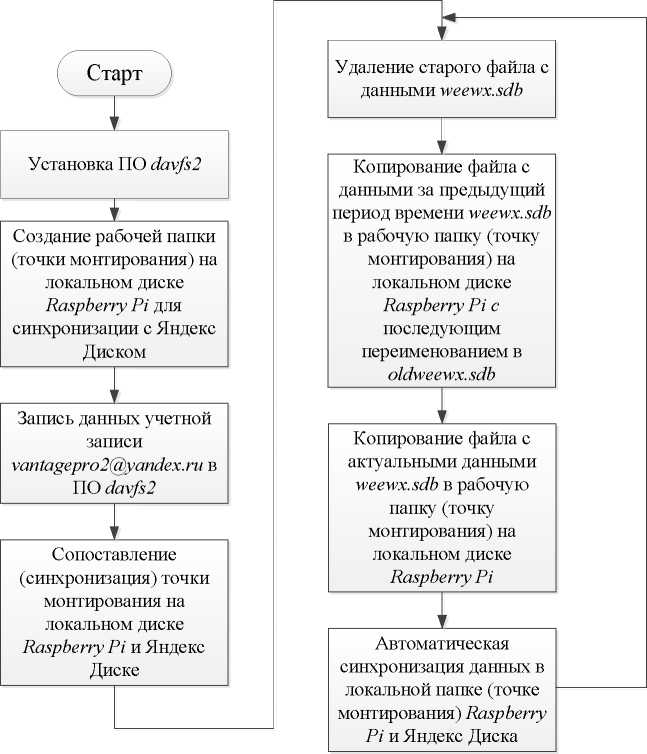 Fig. 3. Block diagram of the algorithm for backing up a file with weewx.sdb data on Yandex Disk