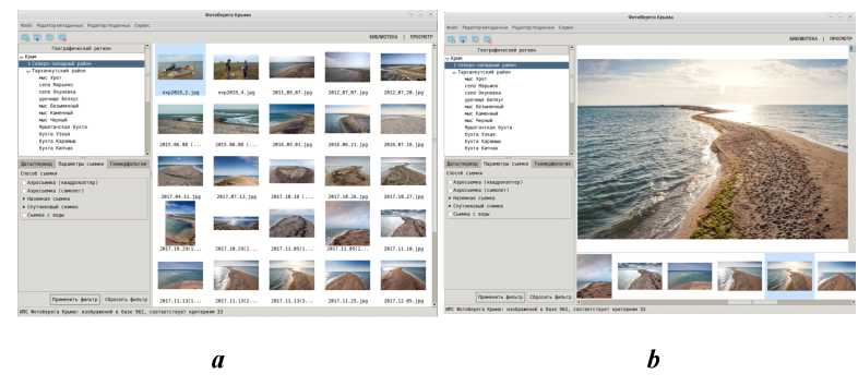 Currently, it is evident that there is a substantial number of software available for the creation of digital image catalogues. However, these products often prove to be inadequate in terms of their efficiency for the purpose of scientific research. Analysis of open source information 1, 2, 3 and personal user experience have demonstrated that the catalogue in most existing software products was typically constructed on the basis of the user computer file system hierarchy (Adobe Bridge, ACDSee Photo Studio, etc.) or its own hierarchical structure (folders in Adobe Lightroom and Corel AfterShot Pro, collections in darktable, digiKam albums, etc.). This approach is inherently disadvantageous due to the limitations of such classifications. The rigid structure of the hierarchy is a particular problem as it makes it difficult to include new levels of division. The classification process becomes excessively cumbersome and challenging to utilise when the number of levels is substantial, yet it lacks sufficient informative value when the number of levels is minimal. Moreover, such products are primarily oriented towards the management of image metadata (i.e. image parameters, geolocation, etc.), yet their capabilities in determining the characteristics of the photosurveyed object are not sufficiently developed to enable the execution of research tasks. It is also noteworthy that a considerable proportion of existing software is commercial, with closed sources precluding modification to align with user needs. A further impediment to the procurement and utilisation of prevailing commercial digital image cataloguing software pertains to the sanctions policy of multiple states against the Russian Federation.