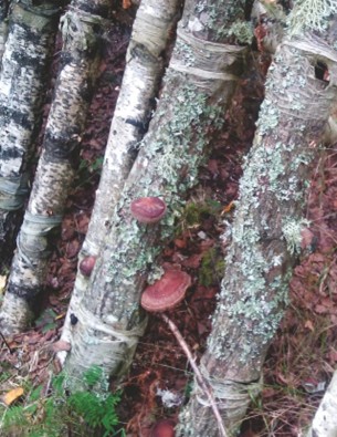 Субстрат для инокуляции Lentinula edodes и Kuehneromyces mutabilis – срубленные в результате разреживания древостоя в 2018 году березы и ольха (Alnus incana) диаметром на высоте груди 10–12 см. Рубка производилась в зимний период, заражение в июне того же года. Заражение Inonotus obliquus производилась методом надрубания топором и инокуляцией в расщеп части мицелия.