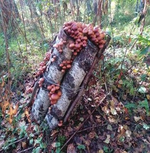 Рисунок 4. Плодоношение опенка летнего на третий год после инокуляции