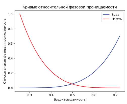 Данные для построения кривых относительной фазовой проницаемости были сгенерированы при помощи программного комплекса tNavigator с использованием корреляции Кори в соответствии с работами [19–21]. Далее численные данные были экспортированы в MS Excel и анализировались при помощи средств языка программирования Python.