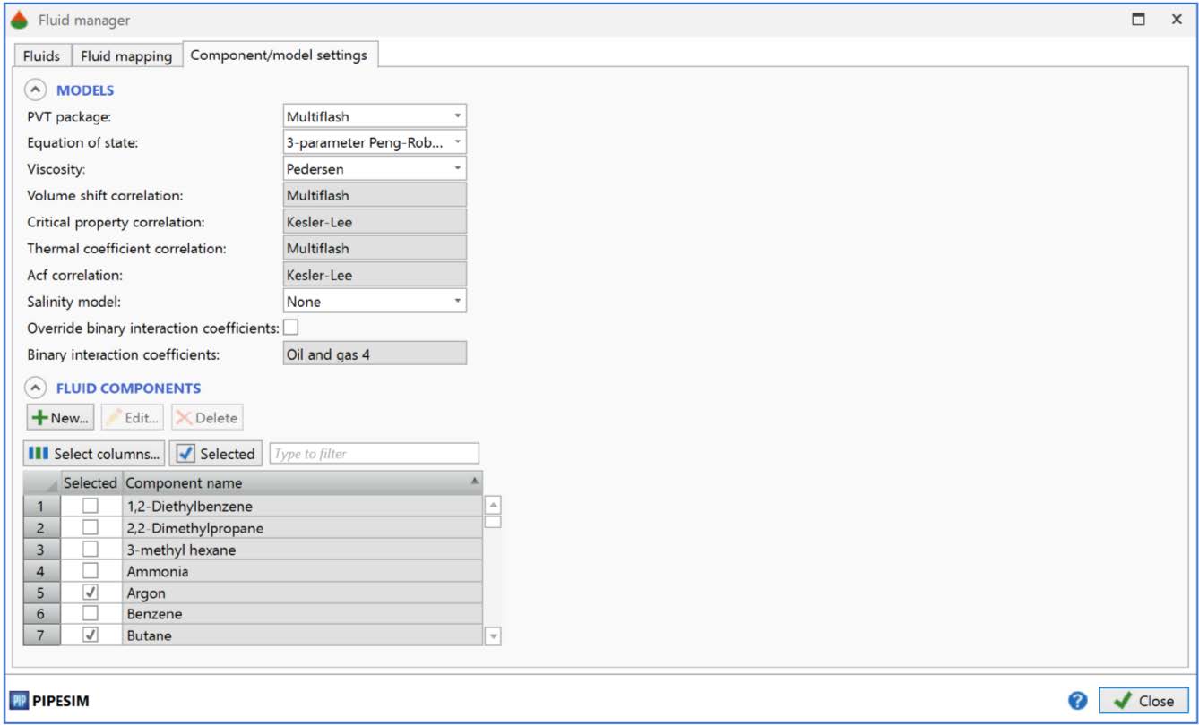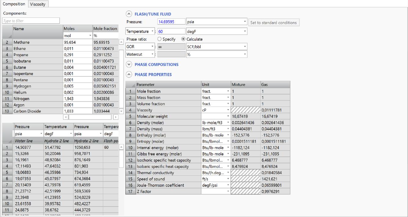 Определение компонентного состава флюида производится с помощью вкладки Fluid Manager, где выбираются необходимые компоненты и корреляции, после чего происходит привязка к скважине и определение компонентного состава с привязкой к термобарическим условиям (рис. 2, 3). Также после задания состава газа автоматически рассчитываются равновесные условия гидратообразования, плотность, вязкость и т. д. [15–17].