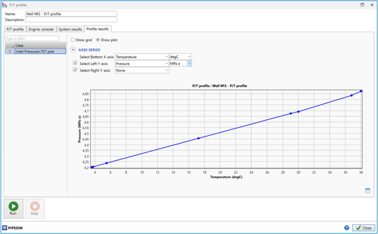 PIPESIM предоставляет возможность расчёта ряда зависимостей и параметров, таких как температура, давление, глубина скважины, риск коррозии, скорость потока, расход флюида (массовый/объёмный), вязкость и др.