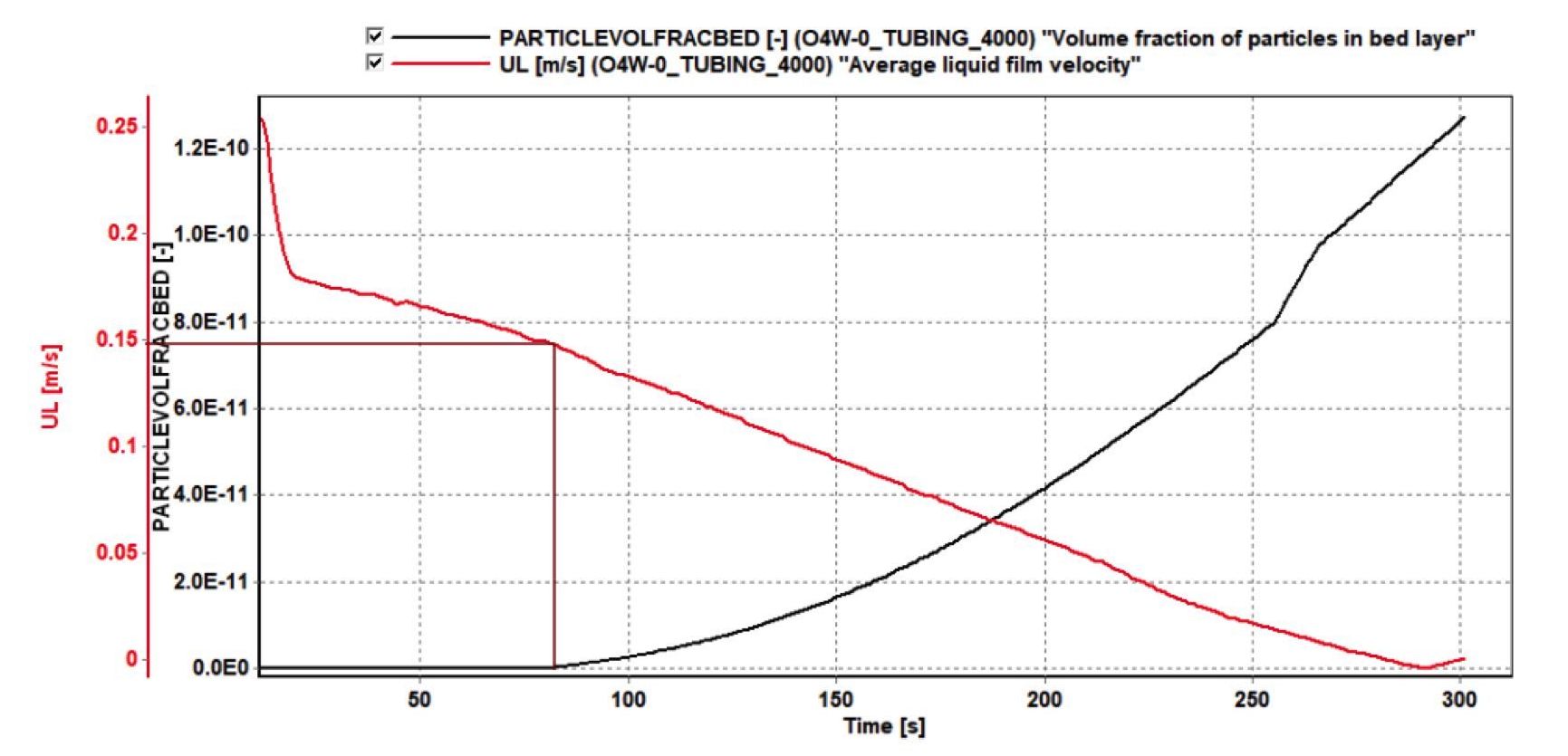 Так как образование песчаной пробки в эксплуатационной колонне наступит раньше, чем полное пересыпание горизонтального участка, следует ожидать, что остановка скважины произойдёт ориентировочно через 145 сут. после запуска.