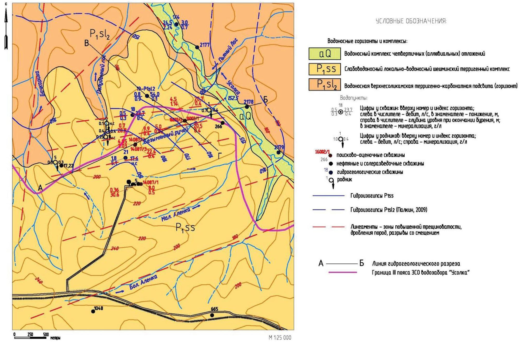 Основная информация последних лет по гидрогеологическим условиям залегания подземных вод по описываемому участку работ получена при переоценке запасов Усольского месторождение подземных вод. В работе [21] обоснована возможность разработки нефтяных месторождений и эксплуатации Усольского месторождения питьевых подземных вод. Результаты ранее проведенных работ указывают на весьма сложные гидрогеологические условия залегания и фильтрации подземных вод шешминского комплекса в пределах Дуринского прогиба как систему отдельных обособленных водоносных прослоев и блоков.