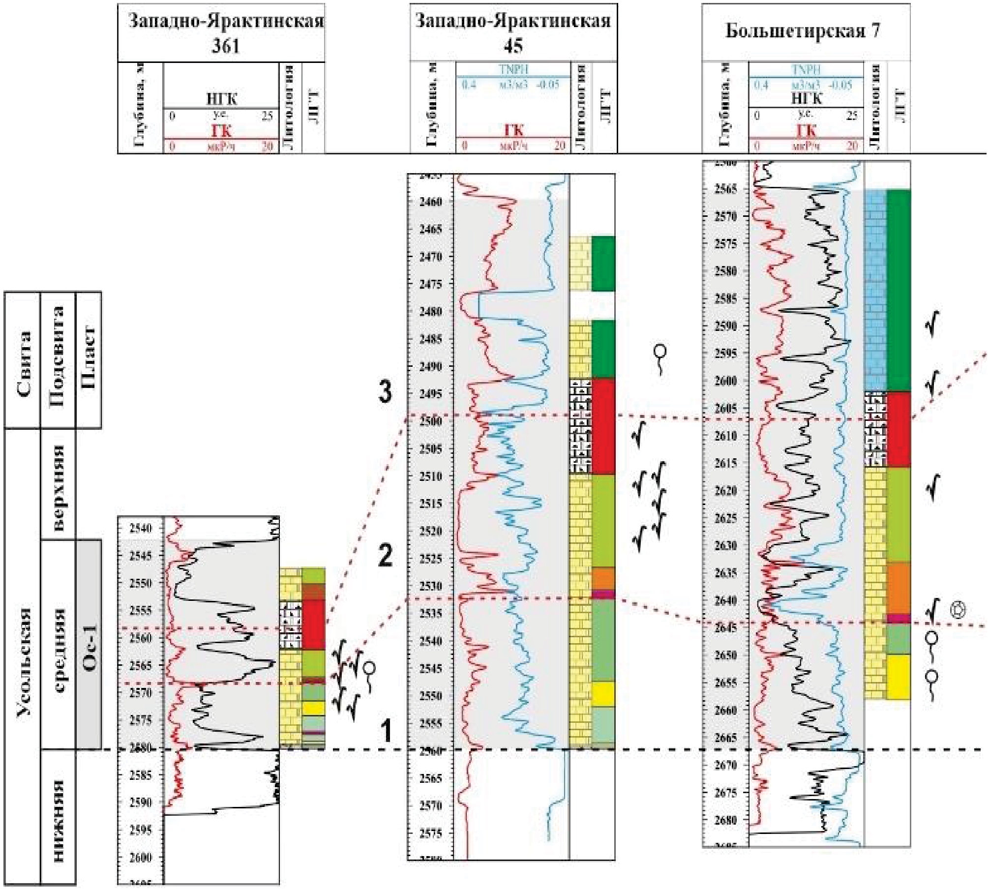 Осинская подсвита имеет трехчленное строение и разделяется исследователями на три пачки, или секвенса [1]. Далее по тексту авторы рассмотрят особенности строения каждой из пачек в зависимости от зоны шельфа.