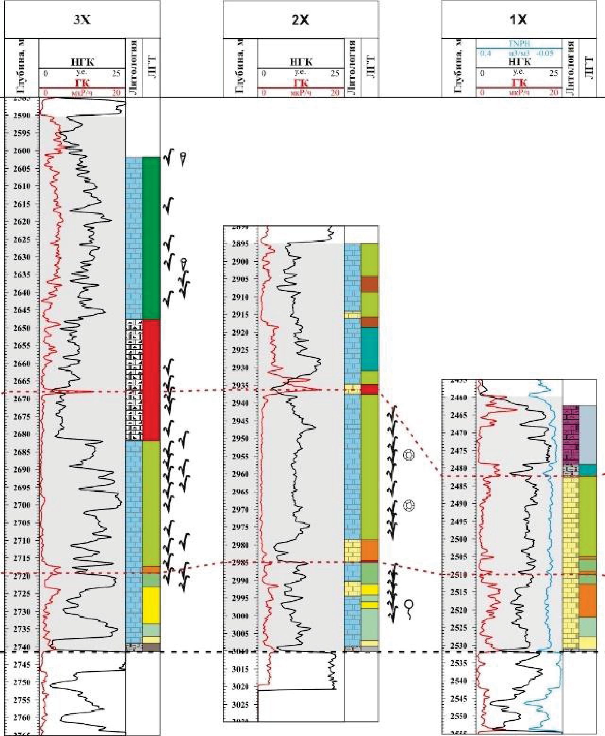 Рис. 3. Схема корреляции изученных скважин (продолжение)