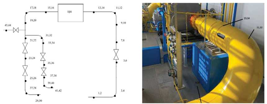 Рис. 1. Схема расположения точек измерения вибрации технологической обвязки