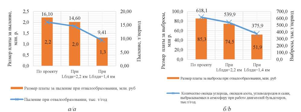 Таким образом, предлагается система критериев, включающих оценку землеемкости, экологические платежи за выбросы и пыление при транспортировании вскрышных пород автотранспортом и отвалообразовании.