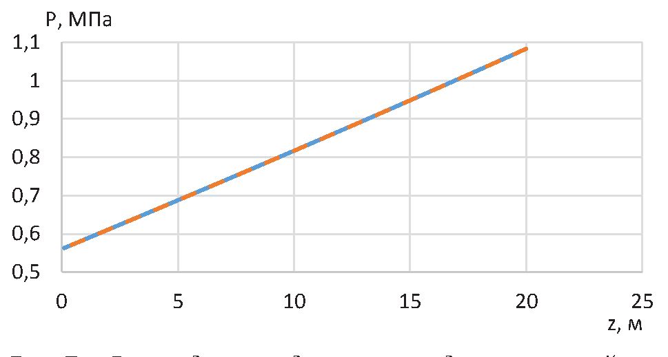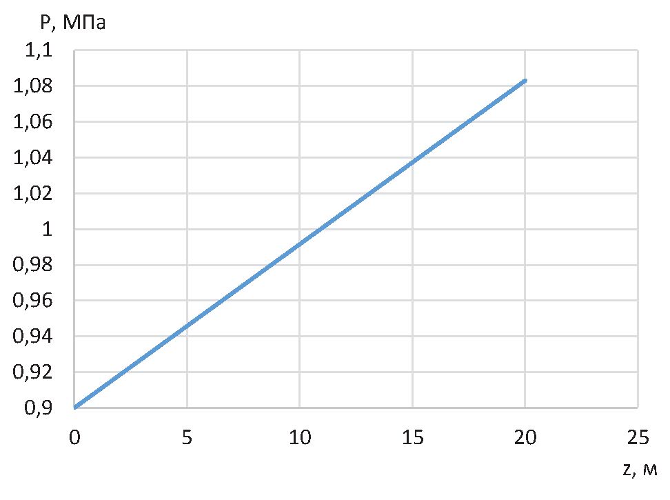 Распределение давления по длине внутренней трубы термостабилизатора представлено на рис. 5 и имеет линейный вид.