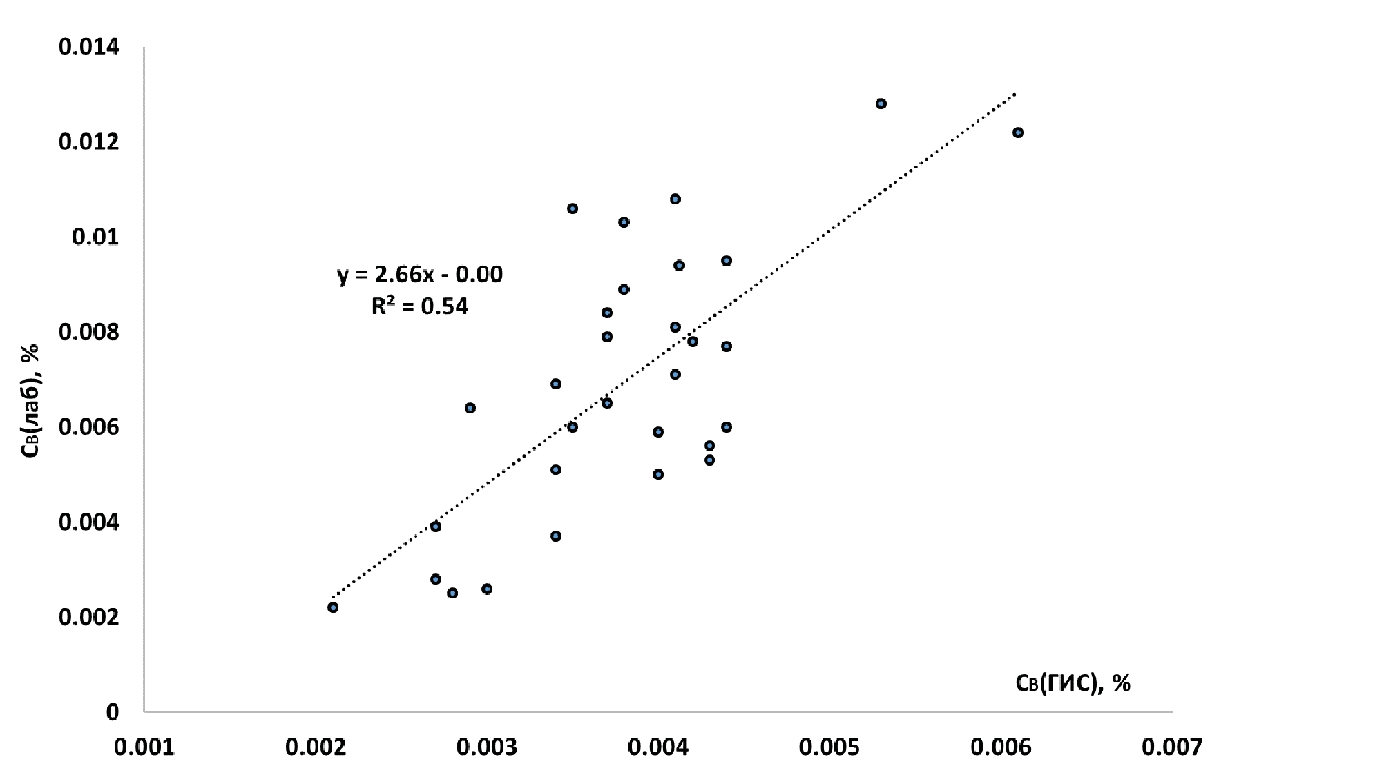 Приведённый результат сопоставления содержаний бора, определенных различными методами, с его высоким коэффициентом корреляции: R=+0,74 (рис. 1), при условии лабораторного метода в качестве «истинного» значения позволяет утверждать то, что метод вычисления содержания бора по ННКт релевантный и обладает свойством валидности.