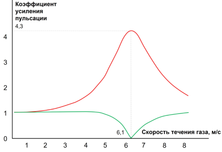 При достижении тупикового ответвления амплитуда пульсации давления стремится к максимуму. Но также она может быть значительной при скоростях, отличающихся от . По приведённым формулам можно сделать вывод, что надежным условием эксплуатации является создание такой конфигурации трубопровода, при которой скорость газа не будет достигать критической скорости: