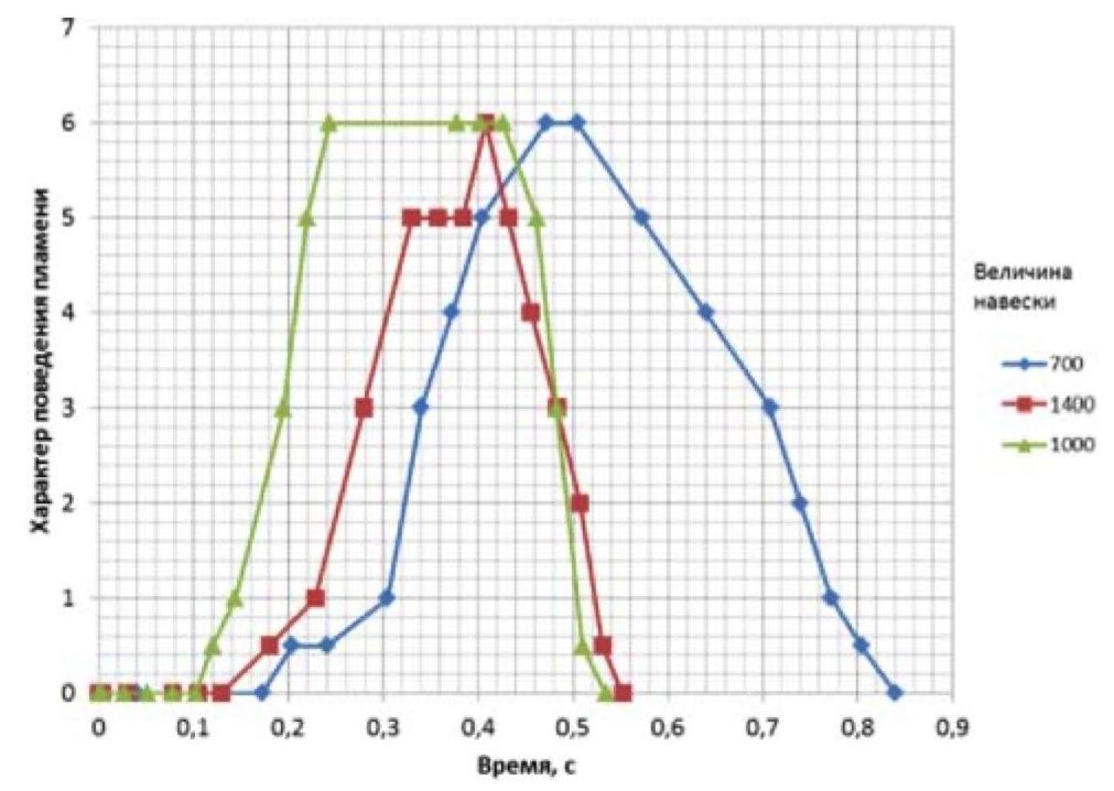 Анализируя данные, представленные на рис. 3, мы видим, что лучше всех горит пылевое облако с количеством твердой фазы в 1000 мг. Это может говорить о следующем: