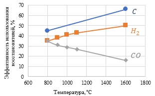 Рис. 2. Изменение эффективности восстановителей с ростом температуры