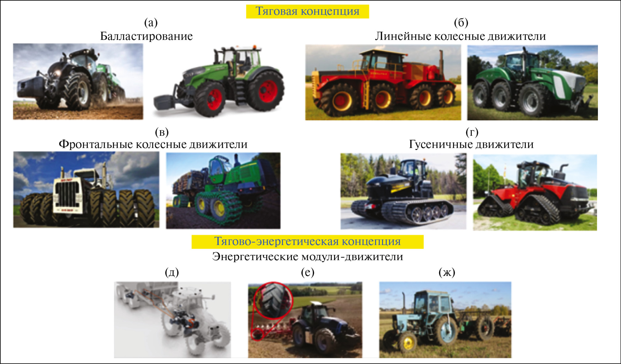 принципы тягово-энергетической и энергетической концепции тракторного земледелия [3], позволяющие повысить тягово-сцепные свойства и мобильность сельскохозяйственных машин;