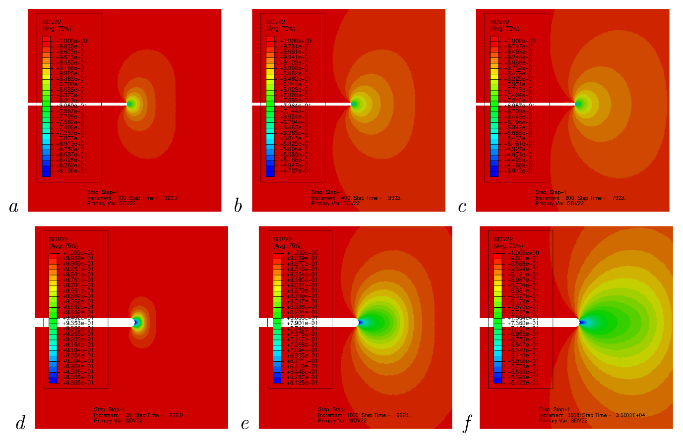 6. Stepanova L.V. Computational simulation of the damage accumulation processes in cracked solids by the user procedure UMAT of SIMULIA Abaqus. PNRPU Mechanics Bulletin, 2018, no. 3, pp. 71–86. DOI: http://doi.org/10.15593/perm.mech/2018.3.08. EDN: https://www.elibrary.ru/yljexz. (In Russ.)