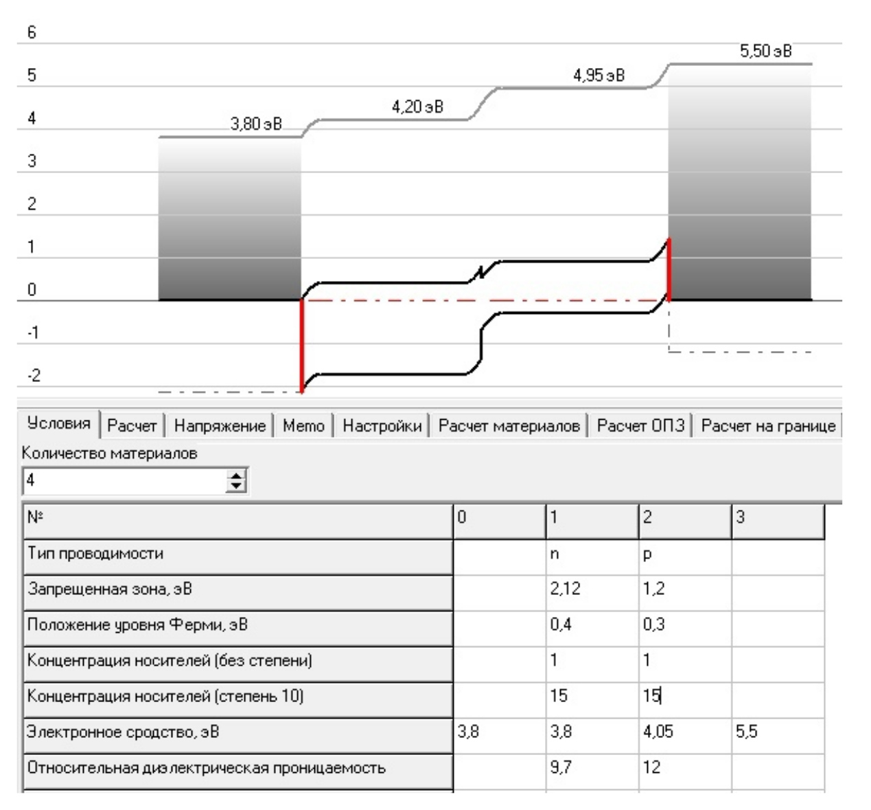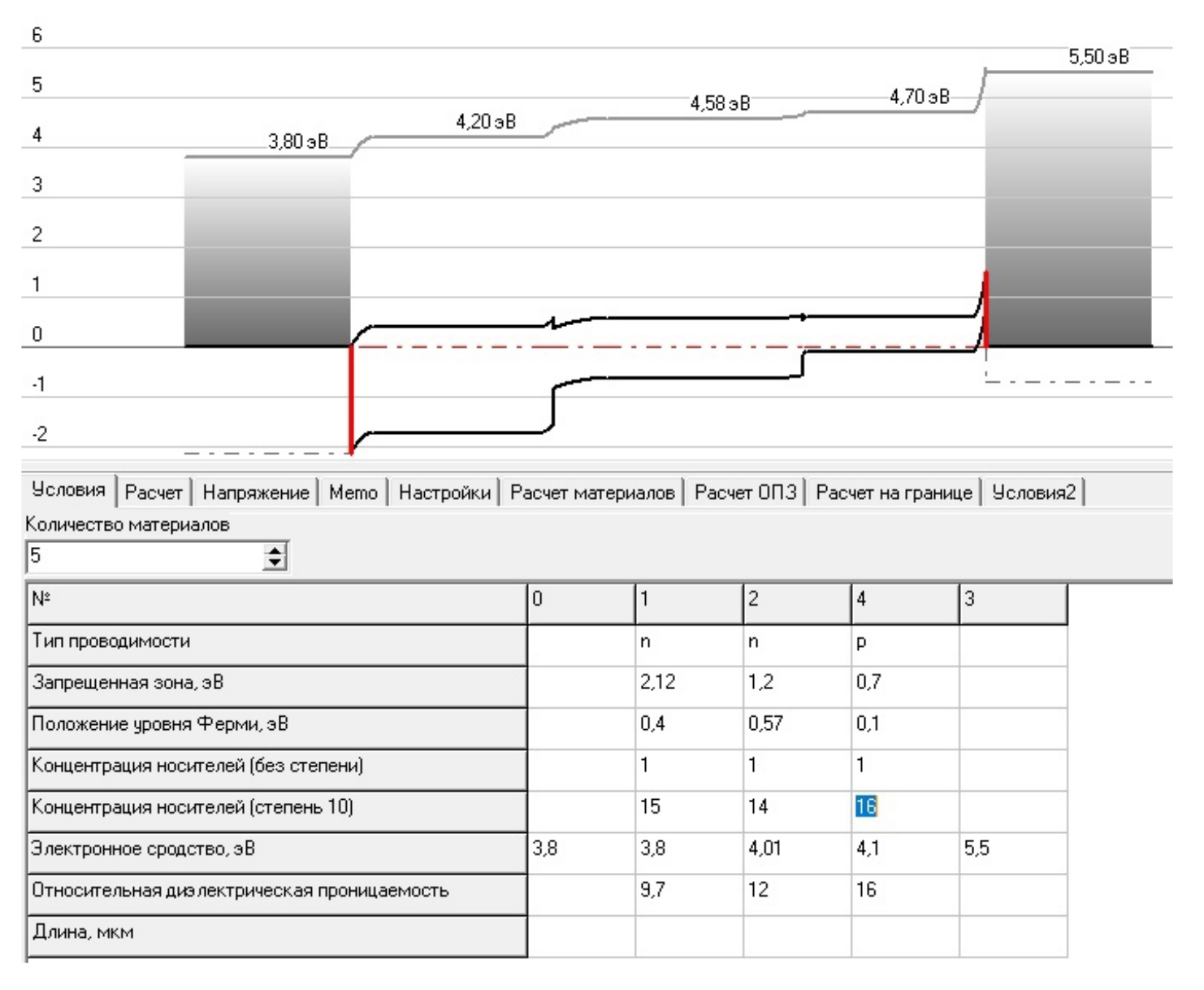 Таким образом, при выборе программного обеспечения для моделирования полупроводниковых гетероструктур исследователям следует учитывать как преимущества, так и ограничения каждого инструмента, чтобы подходящим образом адаптировать его к своим потребностям. При этом отметим, что удобной программы построения последовательности гетеропереходов с контактной металлизацией с контролем квазиуровней Ферми, определением электрофизических характеристик и эффективности преобразования, разделения носителей и транспорта заряда на данный момент нет. Поэтому авторами представляется собственная программа, учитывающая комплекс требований обозначенных выше, на основе языка программирования Delphi и аналитической системы Wolfram Mathematica.