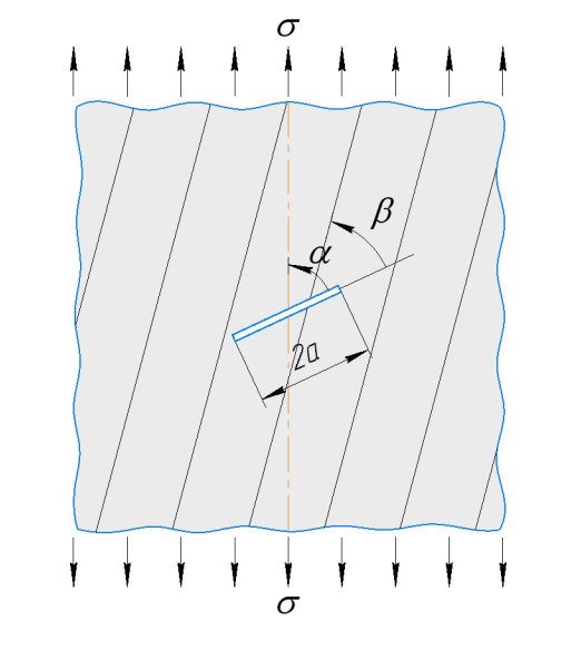 Рис. 1.1. Пластина с трещиной в анизотропном материале