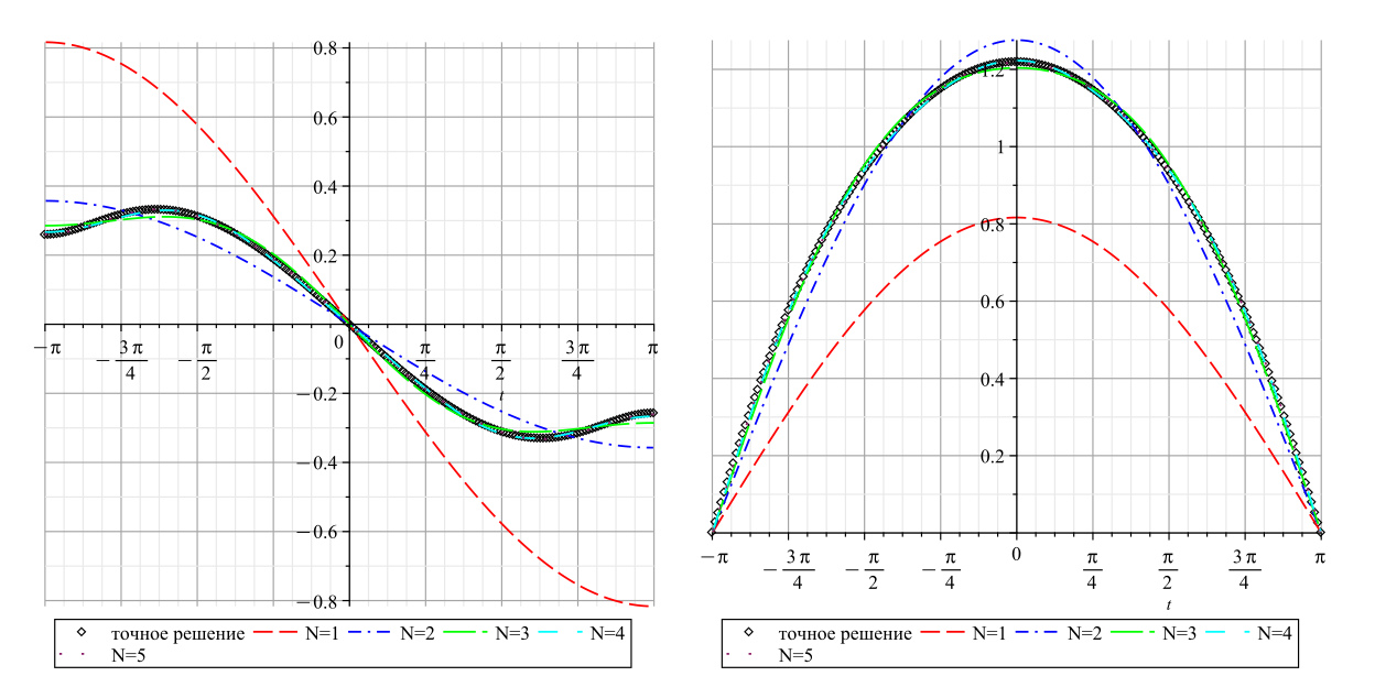 Fig. 2.1. Angular dependences of the stress components (1): σ13 (left) и σ23 (right)