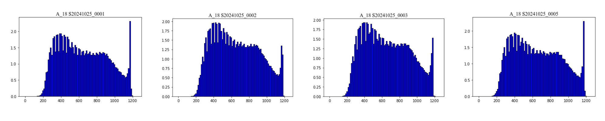 На рисунке 6 показаны гистограммы распределения частот яркости пикселей при разных уровнях мощности освещения и различных апертурах.