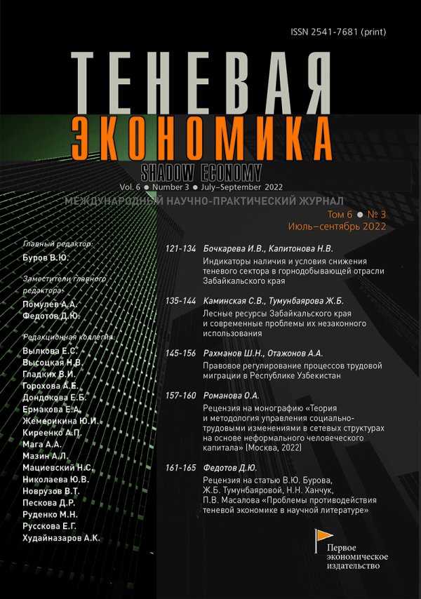The SHADOW ECONOMY journal studies the economic and legal aspects of economic phenomena that go beyond state and industry regulation, including the issues of customs regulation, employment, and taxation. all areas of the Issues of the shadow economy penetrates into all spheres of economic life: production, exchange, distribution, consumption.