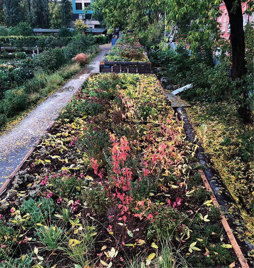 Современное развитие городов – это, как правило, путь урбанизации, которая приводит к резкому снижению площади озелененных территорий [3]. Препятствовать названному негативному процессу можно только увеличивая площади озеленения стен зданий и крыш. В настоящее время в городах появляется много озелененных пространств, размещенных на крышах паркингов. Не всегда воплощенные решения бывают удачными, и такой вид озеленения требует отдельной технологической проработки.