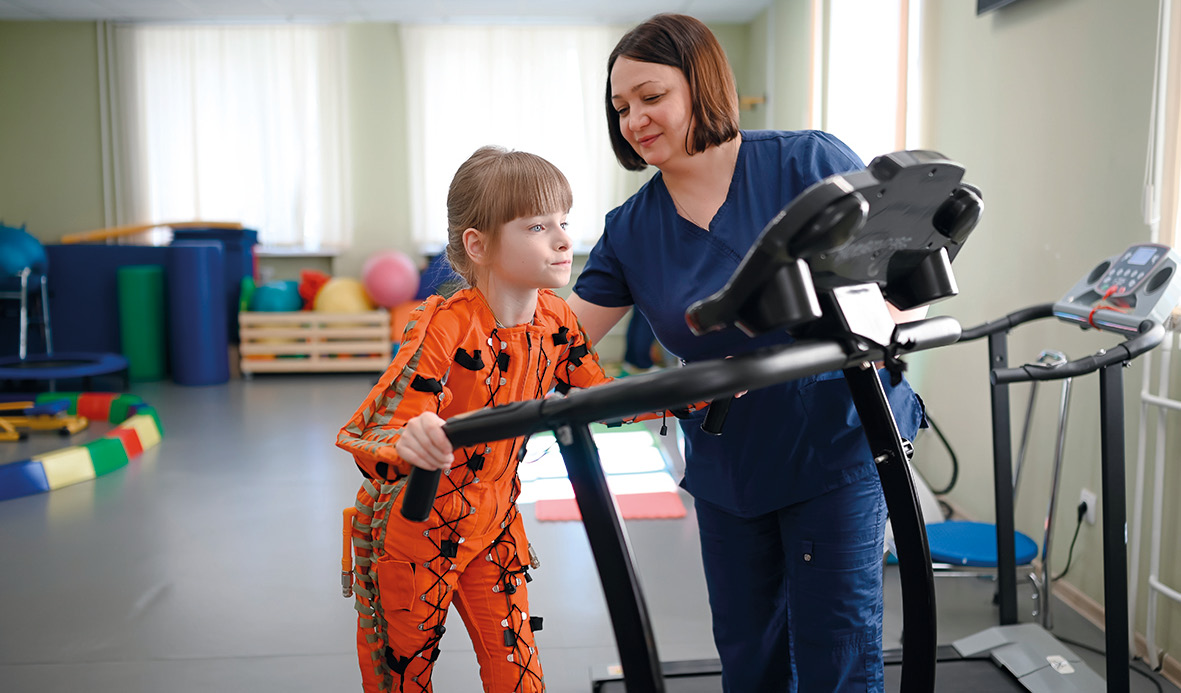 В этом же центре применяют имитатор подошвенной опорной нагрузки «Корвит», который создает ощущение опоры под ногами. Изначально «Корвит», придуманный в Центре авиакосмической медицины и технологий, предназначался для длительных космических полетов. Разработку используют при реабилитации взрослых людей после инсульта и для пациентов с диагнозом «детский церебральный паралич», чтобы сформировать навык ходьбы.