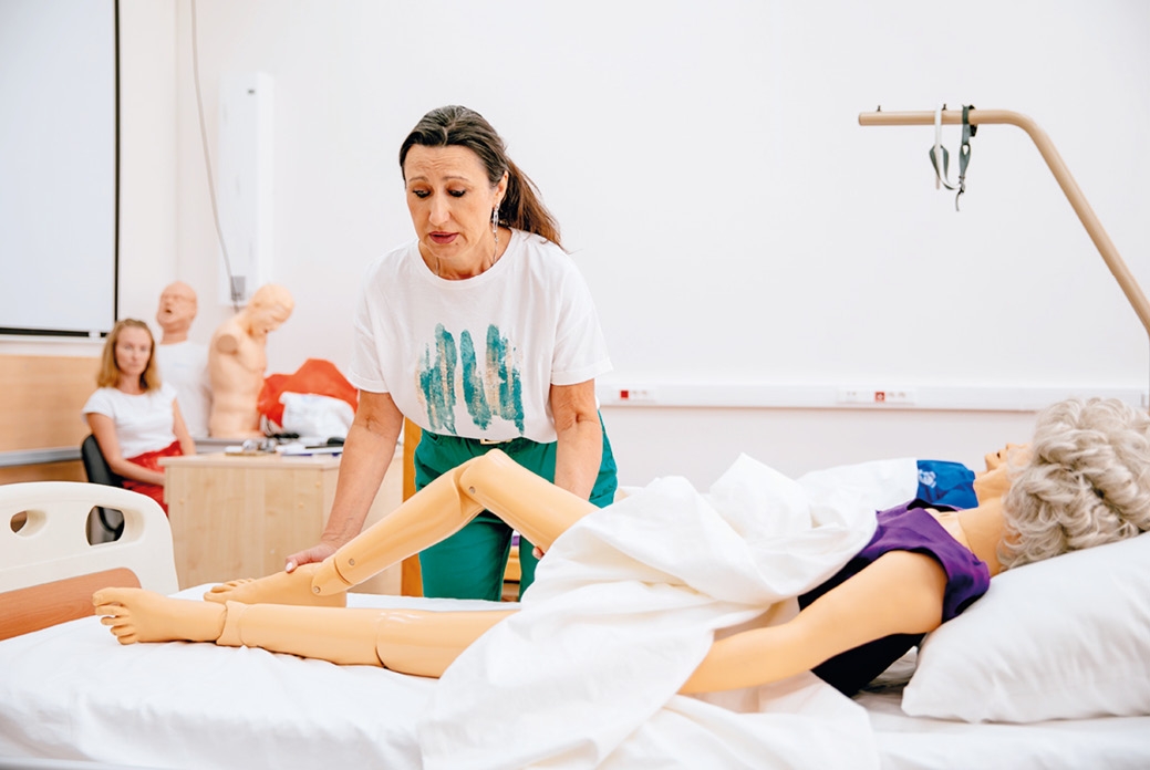 Есть и очные занятия [4] – их проводят специалисты Института дополнительного профессионального образования и партнеры проекта. Участники могут отработать практические навыки ухода в симуляционном классе в институте под руководством тренеров по долговременному уходу. Занятия проходят три-четыре раза в месяц. Участники проекта учатся проводить гигиенические процедуры, перемещать человека в кровати и за ее пределами, организовывать комфортное и безопасное пространство в квартире и т. д. Кроме того, слушатели могут посетить курс первой помощи и узнать базовые алгоритмы действий при неотложных состояниях – инфаркте, инсульте, сердечном приступе, научиться проводить сердечно-легочную реанимацию. Обучение происходит на интерактивных манекенах.