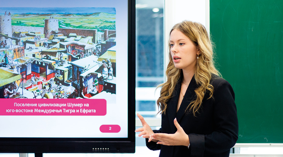Защита социокультурного проекта выпускницей бакалавриата Университета Правительства Москвы М. И. Савченковой (фото А. Красавина, 2024 г.)
