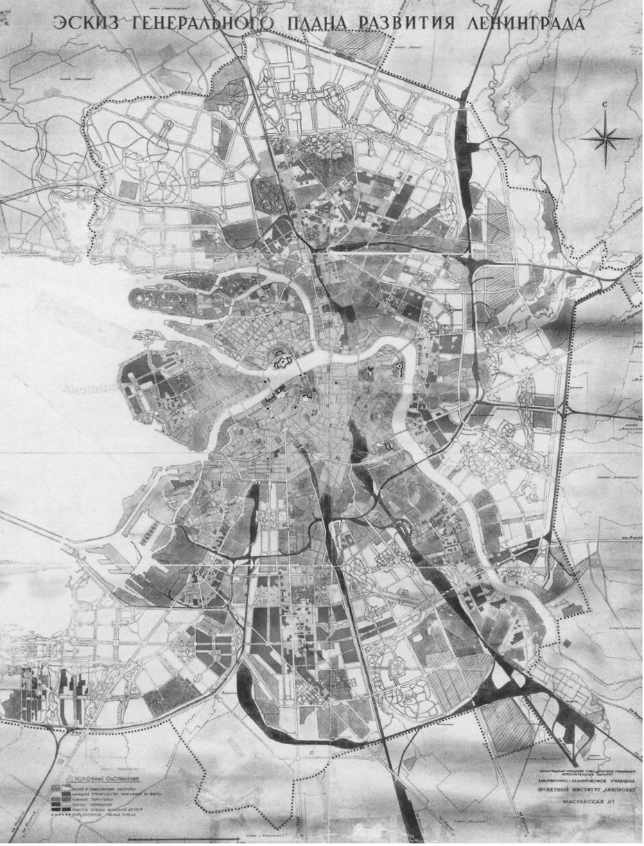 В начале 1966 г. работа над новым Генеральным планом развития Ленинграда (авторы В. А. Каменский, А.И. Наумов, Г. Н. Булдаков, К. С. Кривцов, М.И. Василевский, В. Ф. Назаров, Г.К. Григорьева и др.) была завершена, 15 июля того же года он был утвержден специальным правительственным Постановлением и до середины 1980-х гг. стал законом для развития города (рис. 13).