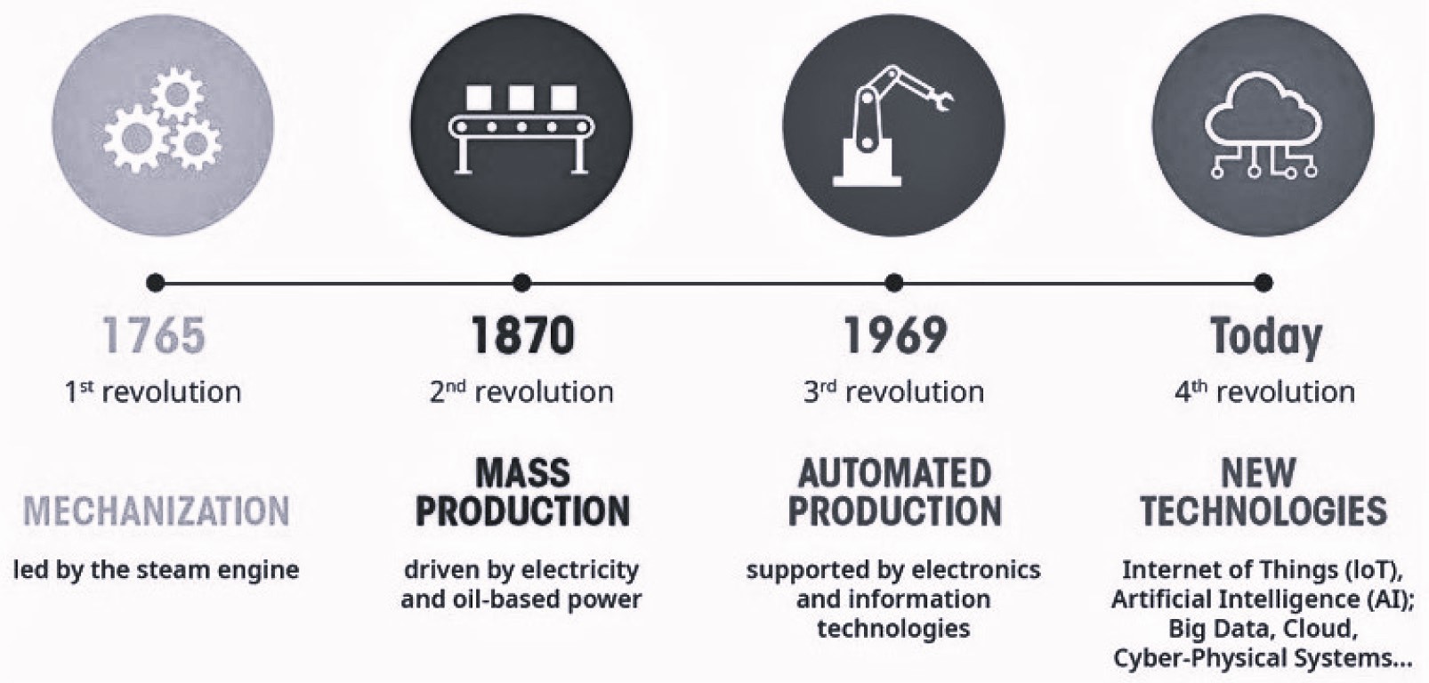- Basic understanding of the industrial revolutions in which describes four main industrial revolutions in the history based on literature review (starts from machine production era (1784) up to days cyber physical system);