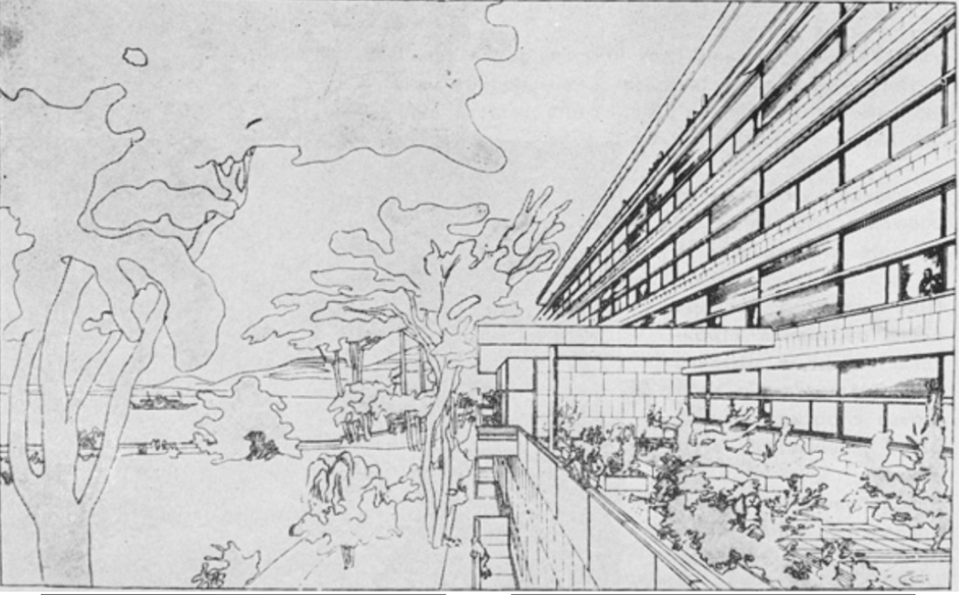 Рис. 2. Графический эскиз Ле Корбюзье. Конкурсный проект Лиги Наций в Женеве, Швейцария. 1927 г.