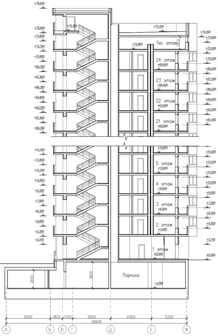 При этом из-за более строгих требований, установленных в нормативных документах для проектирования высотных зданий (выше 75 м), и учитывая экономическую нецелесообразность строительства мало- и среднеэтажных объектов, застройщики нередко предпочитают реализацию проектов зданий повышенной этажности, включающих обычно 16‒25 этажей.