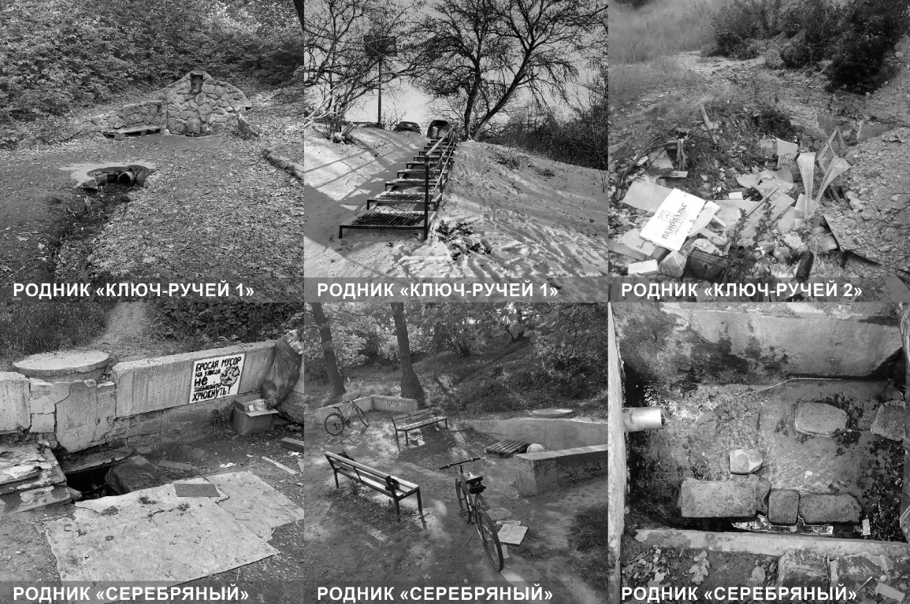 Рис. 3. Фотофиксация родников «Серебряный», «Ключ-ручей 1», «Ключ-ручей 2» на территории долины балки Пахотина в Кировском районе Волгограда