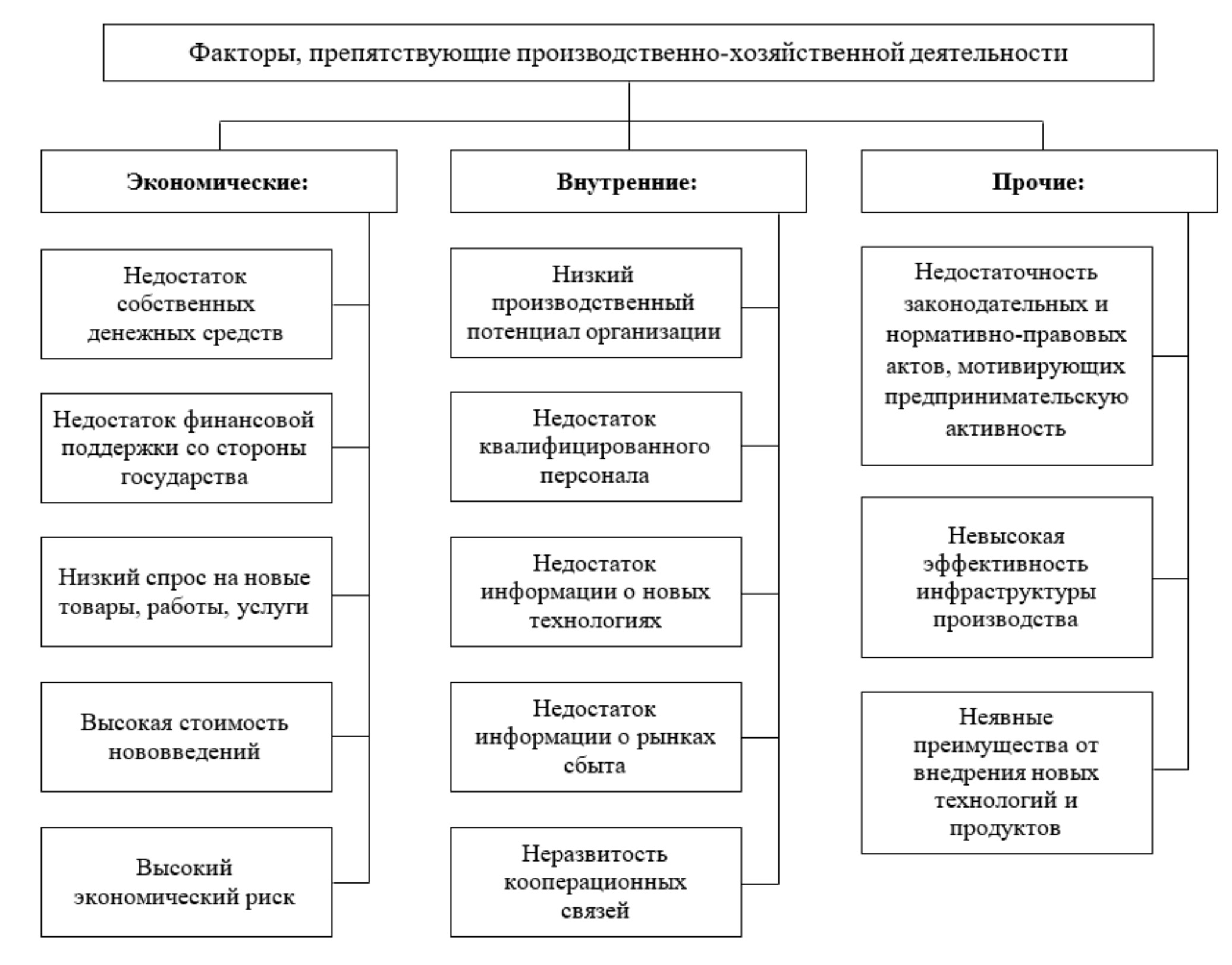 Рис.1: Классификация факторов, препятствующих производственно-хозяйственной деятельности по Руководству Осло [9, 10].