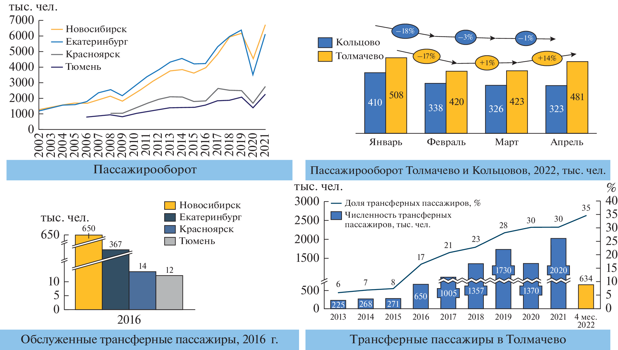 The article proposes a methodology for assessing the conditions and factors that contribute to the formation of regional air hubs. As conditions, the following are considered: the transport and geographical location and local demand’s volume, as factors–airport throughput, representation of the base air carrier, infrastructure for transfer and the quality of the take-off and landing schedule. For the analysis, four airports: Koltsovo (Ekaterinburg), Roschino (Tyumen), Tolmachevo (Novosibirsk) and Emelyanovo (Krasnoyarsk) were selected that are most suitable for the formation of a regional air hub in them. These airports serve the largest cities and are located on the outskirts of their territorial groupings of cities facing other territorial groupings of cities between which the transfer will be carried out, which is the best combination for forming a regional hub. A regional hub is an airport in a non-capital city that specializes in servicing transfer transportation between different parts of the country. For each condition and factor, the actual or calculated value of the indicator is given and normalized from 0 to 1. Due to the constancy of conditions for a short period of time, in order to increase the potential for the formation of an air hub, the airport administration needs to work with factors, among which the most important, flexible in terms of speed and cost of implementation is the factor of the aviation schedule of take-offs and landings. According to the results of the analysis, the Yekaterinburg airport has optimal conditions for the formation of a hub, but the administration of the Novosibirsk airport operates with factors better, for example, it works on the convenience of transfer connections, interacting with the base air carrier.